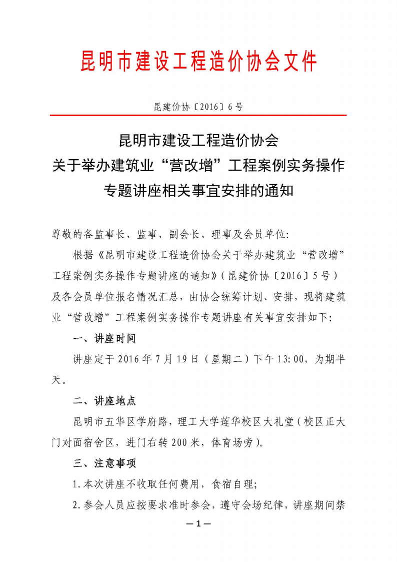 關(guān)于舉辦建筑業(yè)“營(yíng)改增”工程案例實(shí)務(wù)操作專題講座相關(guān)事宜安排的通知