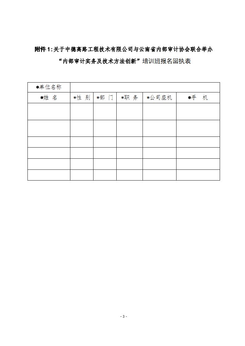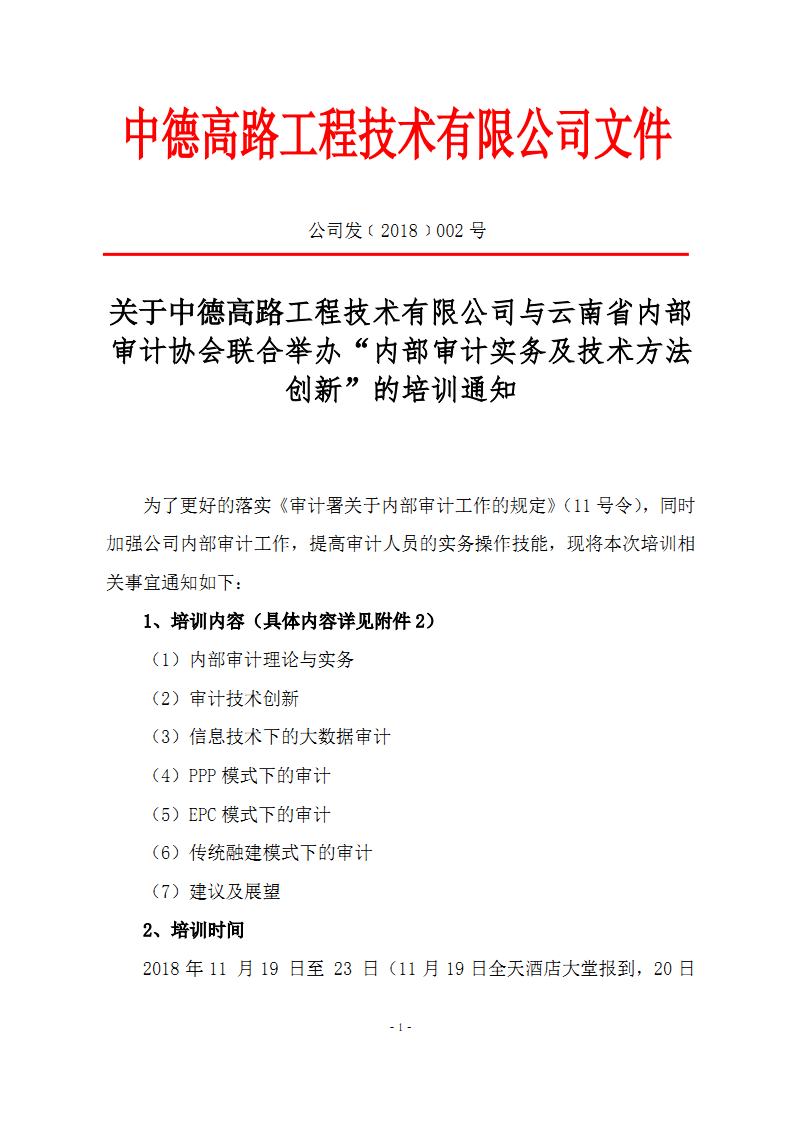 關于中德高路工程技術有限公司與云南省內(nèi)部審計協(xié)會聯(lián)合舉辦“內(nèi)部審計實務及技術方法創(chuàng)新”的培訓通知