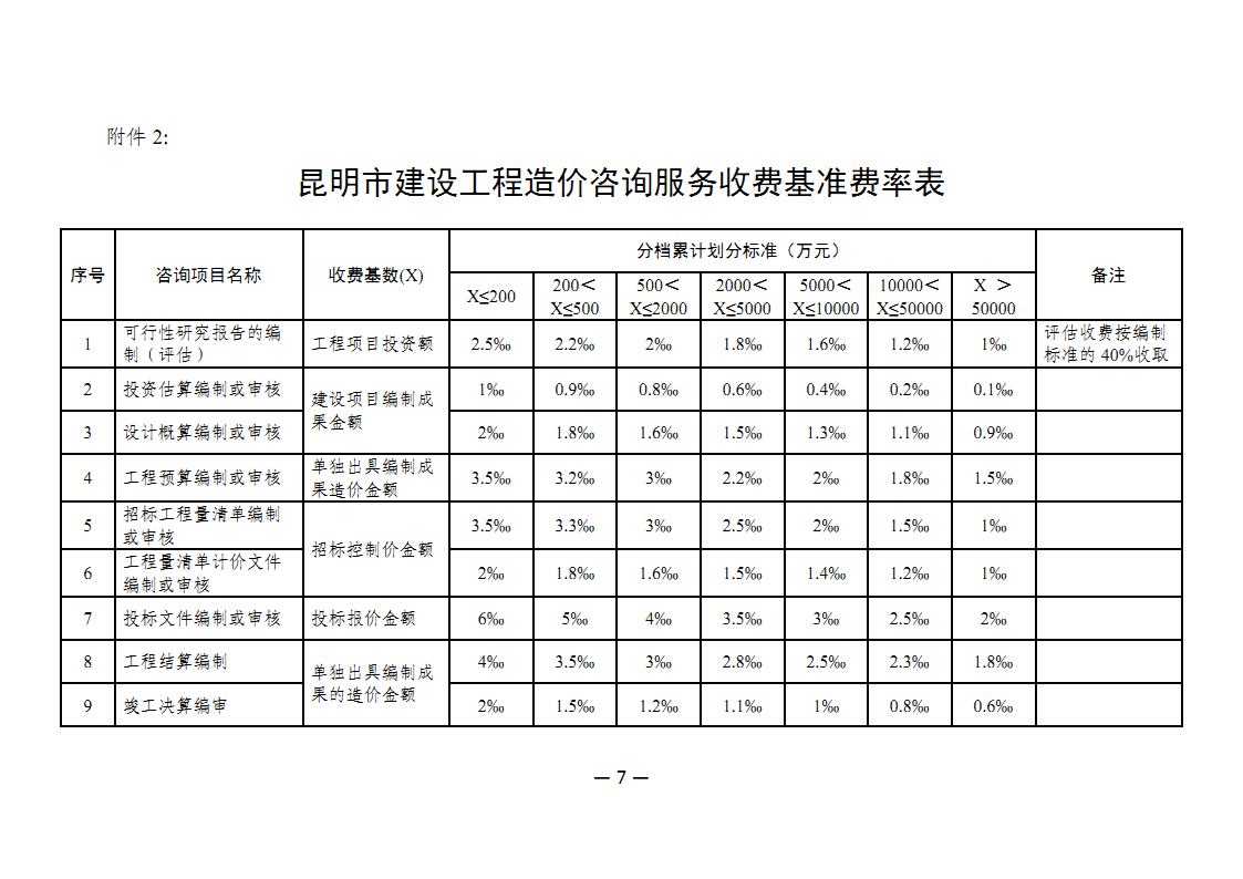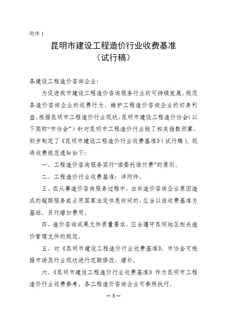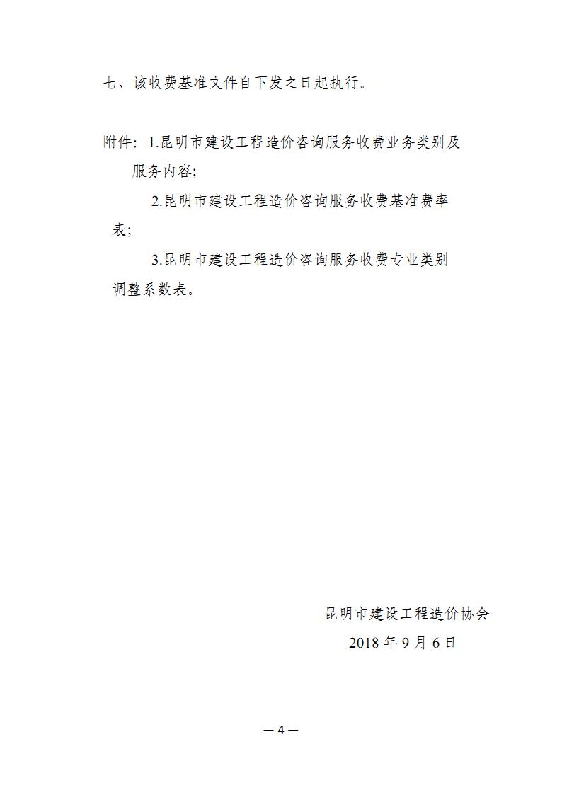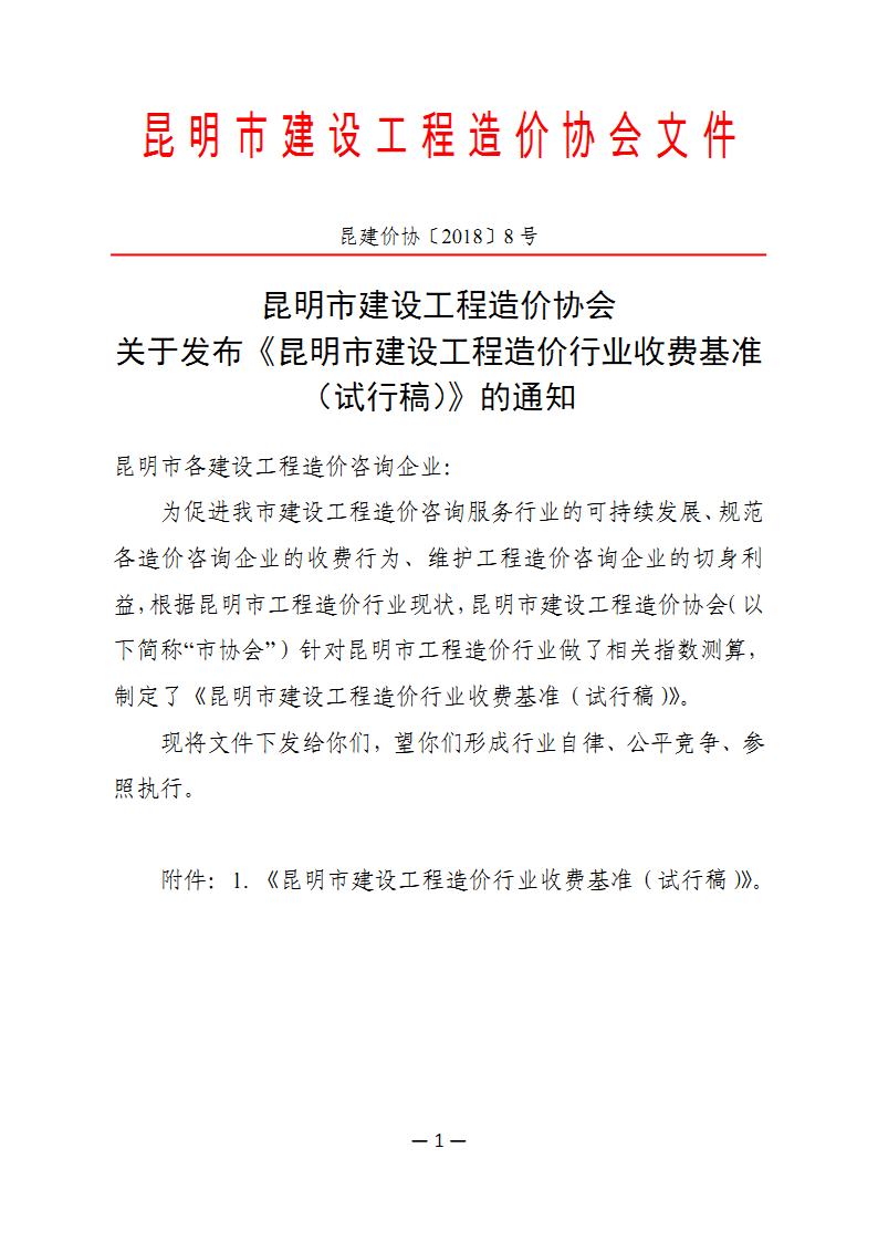 昆明市建設(shè)工程造價(jià)行業(yè)收費(fèi)基準(zhǔn)(試行稿,昆建價(jià)協(xié)〔2018〕8號(hào))
