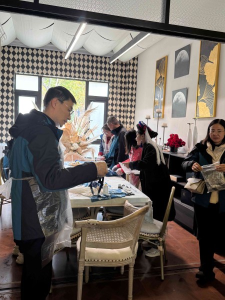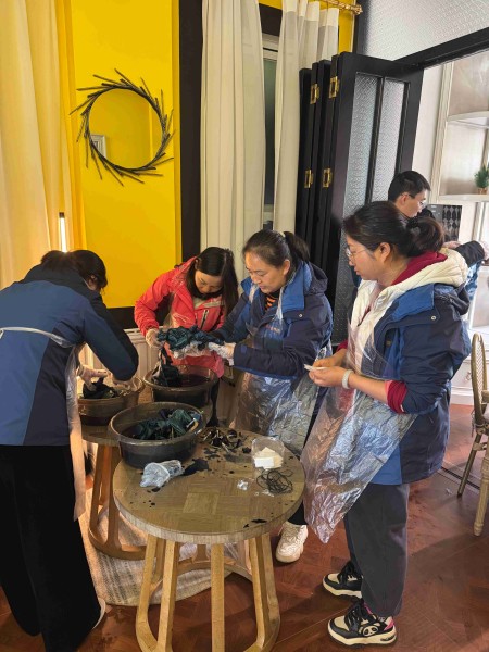 第二天一早的晨間活動以少數(shù)民族的扎染活動開啟,在老師的悉心指導(dǎo)下,“同學(xué)”們都陸續(xù)完成了自己的作品,在將成品裝袋的時候大家小心折疊、放置,嘴角露出滿意的微笑,或許這就是通過自己的雙手努力而來‘成果’的價值吧。某一同事經(jīng)過時,聽到一句小聲的嘀咕“我要把它送給我的寶寶”,是呀,除了是同事,是員工,他們可能還是心系家庭的爸爸媽媽,是想把最寶貴的物品送給心里最疼愛的人的社會角色吧。