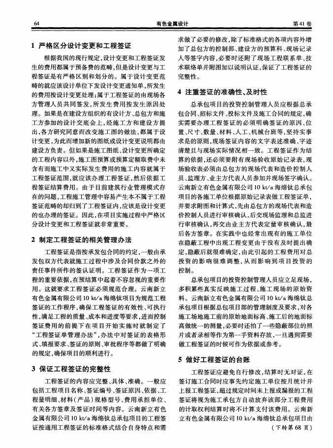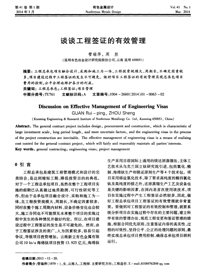 談談工程簽證的有效管理 管瑞萍 周勝 《有色金屬設計》-2014年1期